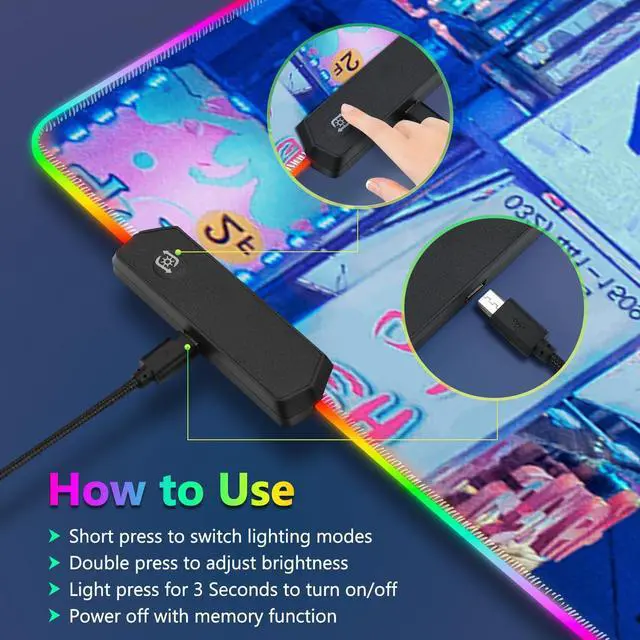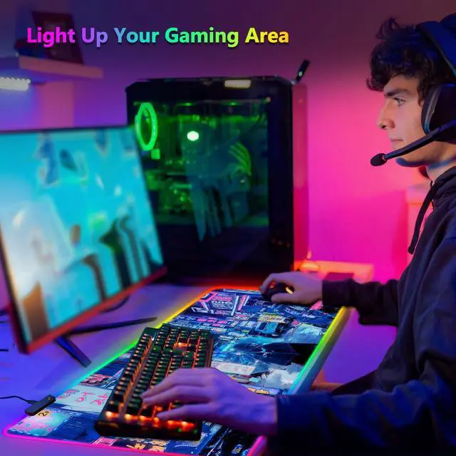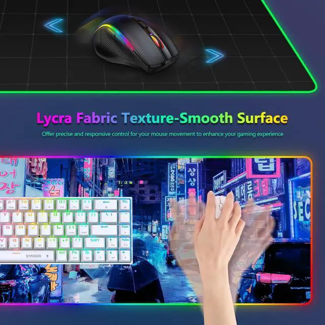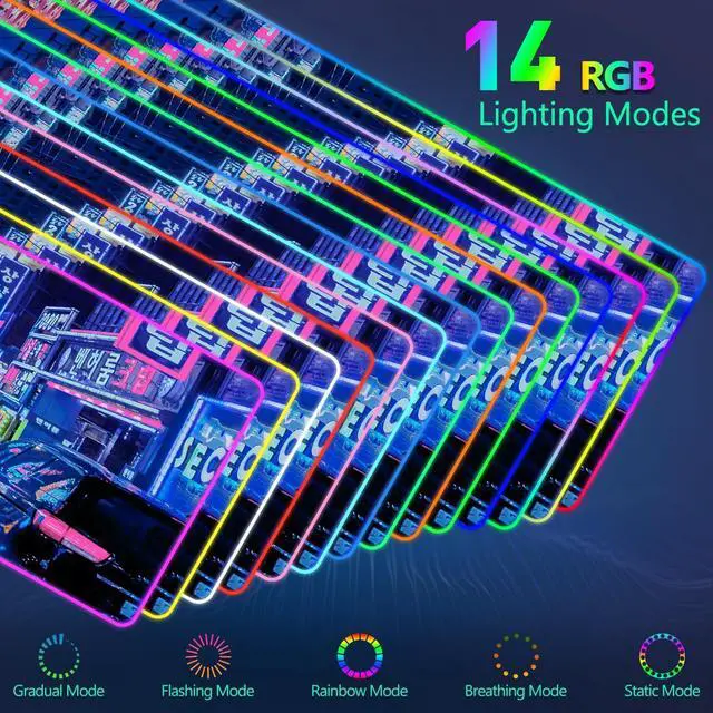 14 Colors Modes: This rgb mouse pad offers 14 lighting modes, including colorful dynamic breathing and monochrome static lighting, enhancing the ambiance for an immersive gaming experience. The led mouse pad also features a power-off memory function to retain your last selected mode.