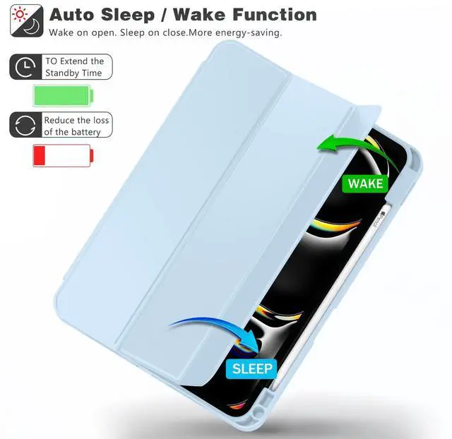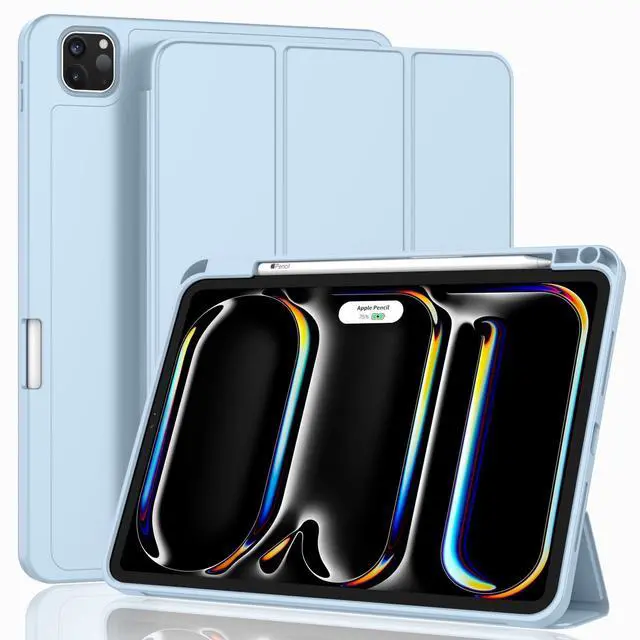 ZryXal 2024 iPad Pro 11 Inch Case M4 (5th Generation) with Pencil Holder, Smart iPad Case [Support Pencil Pro and Pencil (USB-C)], Support Touch ID and Auto Wake/Sleep (Sky Blue)