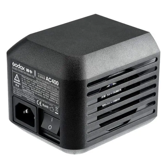 Godox AC400 Power Source is especially designed for Godox AD400pro AD400proII all-in-one flashes ^^ Fast work, Quick installation interface, plug and use, saving more time for shooting ^^ Scattering Heat, Converter equipped with ventilation holes, to remove high temperature damage to the flash ^^ Freely Choose DC or AC Power Source and achieve AC-DC dual purpose ^^