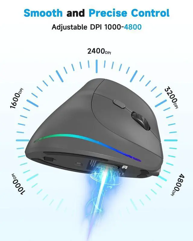 DPI: Adjust instantly among 1000/1600/2400/3200/4800 DPI levels to match any workflow. Designed for users who demand precision and control. Whether editing, coding, or designing, this wireless ergonomic mouse delivers pixel-perfect accuracy and responsive tracking that adapts to your every move ^^ Enduring