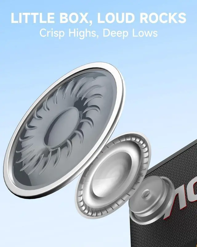 ^^ [Powerful and Clear Sound] Despite its compact size, this portable speaker delivers surprisingly powerful, well-balanced sound with rich bass and clear highsideal for both indoor and outdoor use.