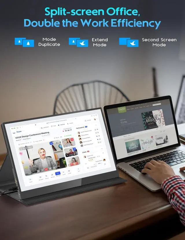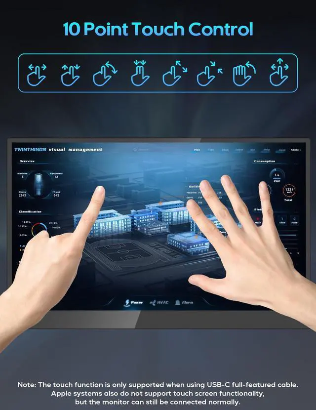 10-point Touchscreen & 1ms Response speed The portable monitor for laptop support Tap, swipe and pinch to zoom, easily performing complex commands. The response time of the OLED monitor portable is less than 1ms, the picture is clear and has no residual image. It achieves high-speed dynamic response and effectively reduces the dizziness of playing games and watching movies. Note: Apple systems also do not support touch screen functionality, but the monitor can still be connected normally.