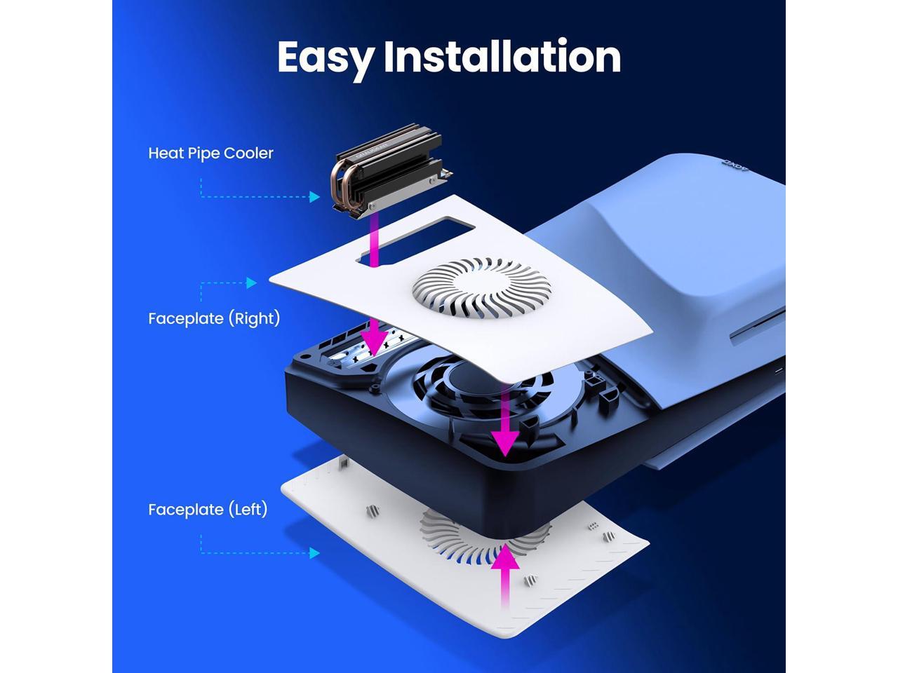 - [(Efficient Cooling)] This cooling pack comes with a ventilation cover and open-air heatsink to dissipate heat from the PlayStation 5 Slim console