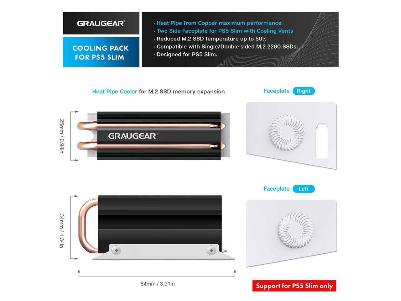 GRAUGEAR PS5 Slim M.2 SSD Cooling Pack, Ventilation PS5 Slim Cover and Open-Air PS5 SSD Heatsink, Heat Pipe Cooler for PS5 M.2 SSD, Cross Ventilation Design(Not Fit for Original PS5/PS5 Pro)
