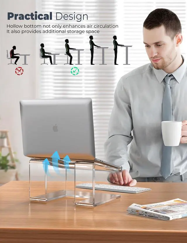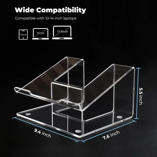 [(UNBREAKABLE LAPTOP STAND)] Acrylic is as sturdy as metal, and this acrylic laptop stand for desk can withstand up to 30 pounds of weight. The width of the desk laptop stand is 9.4