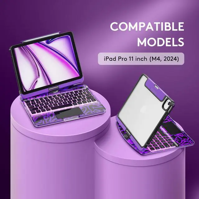 GUSGU Transparent Case with Wireless Keyboard only for 2024 iPad Pro 11-in. (M4), 7 Colors Backlight, Trackpad, 360degRotating Stand for iPad Pro 11 (5th Gen), Tech Style