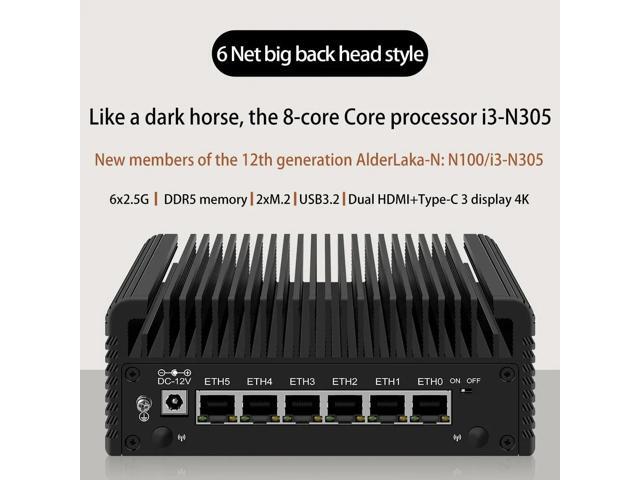 HKUXZR Firewall Appliance Mini PC, Intel Celeron N100 Quad Core 6xIntel I226 2.5G Type-C Ethernet VPN Router PC AES-NI 2*NVMe 2*SATA3.0 Fanless DDR5 HDMI*2
