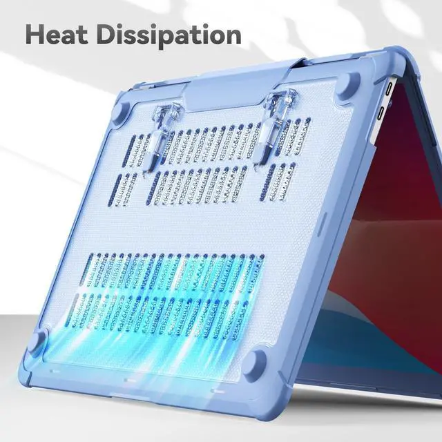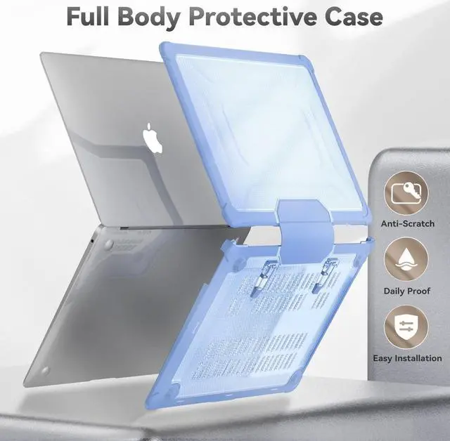 Foldable Kickstand : Designed with anti-slip sturdy kickstand, which gives a nice height adjustment to prop the laptop up, offering a more friendly typing angle and viewing angle. The vents on the bottom can also help the heat dissipation, comfortable for daily use, the built-in stand can be folded up when not in use.