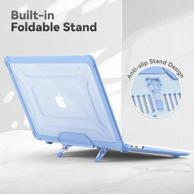 HXCASEAC Case Compatible with MacBook Air 13 inch 2020 2018, Anti-Scratching Protective Hard Cover with Foldable Stand for A2337 A2179 A1932 - Sky Blue