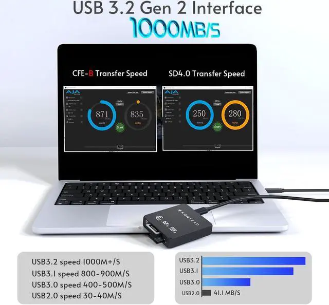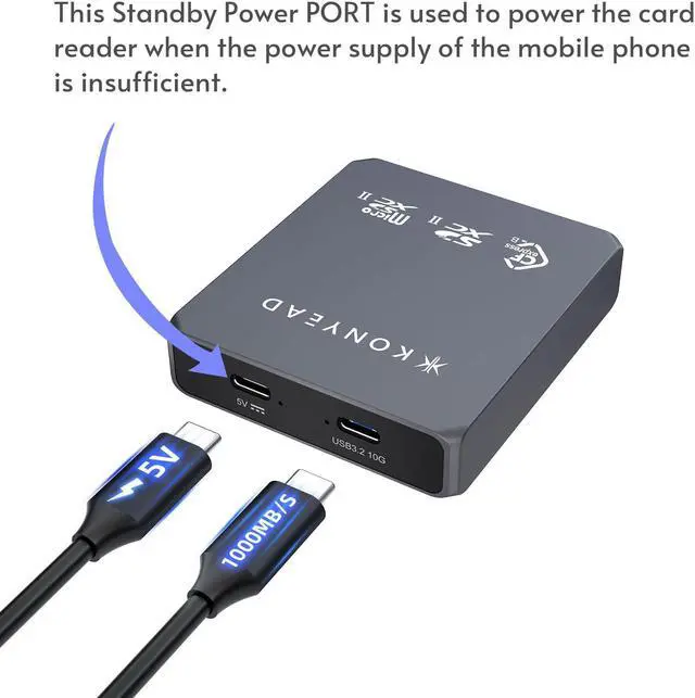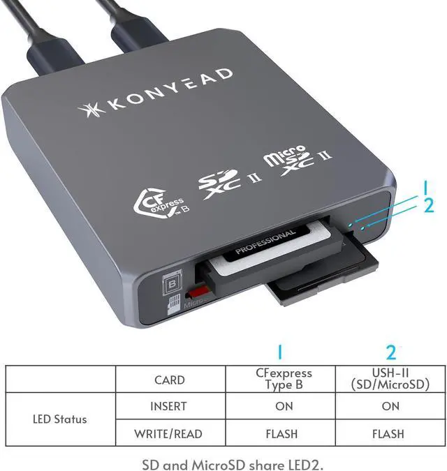 [(Super Fast)] CFexpress Type B transfer speed up to 1000MB/s, the UHS-II SD transfer speed up to 300MB/s, the Micro SD transfer speed up to 300MB/s; Plug and play, drive free. It supports USB3.2 Gen2 x1 and is backward compatible with USB3.1/3.0/2.0.