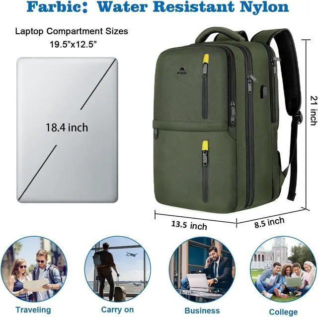 MATEIN Extra Large Carry on Backpack, TSA Friendly 18.4 Inch Travel Laptop Backpack with USB Port & Shoe Compartment, 45L Water Resistant College Overnight Weekender Daypack for Men & Women, Green