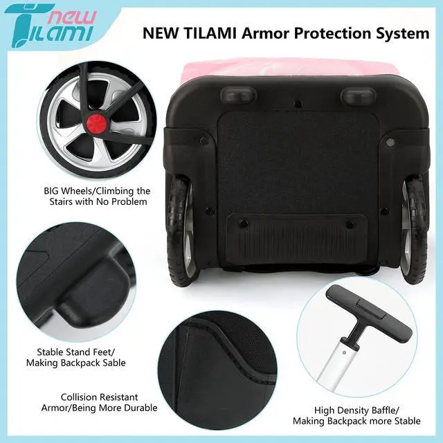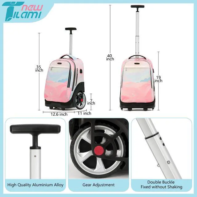 Easy Transportation: NEW TILAMI backpack with wheels comes with a sturdy handle that can be extended for effortless transportation. You can easily maneuver through crowded spaces or roll it smoothly on various surfaces.
