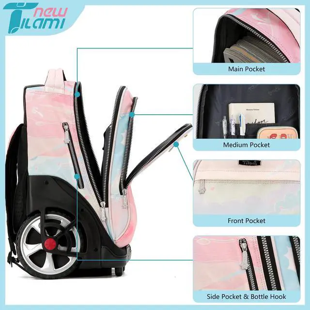 Durable and Stylish: Made with high-quality materials, NEW TILAMI rolling backpack is built to last. Its stylish design and vibrant colors make it a trendy choice among both boys and girls.