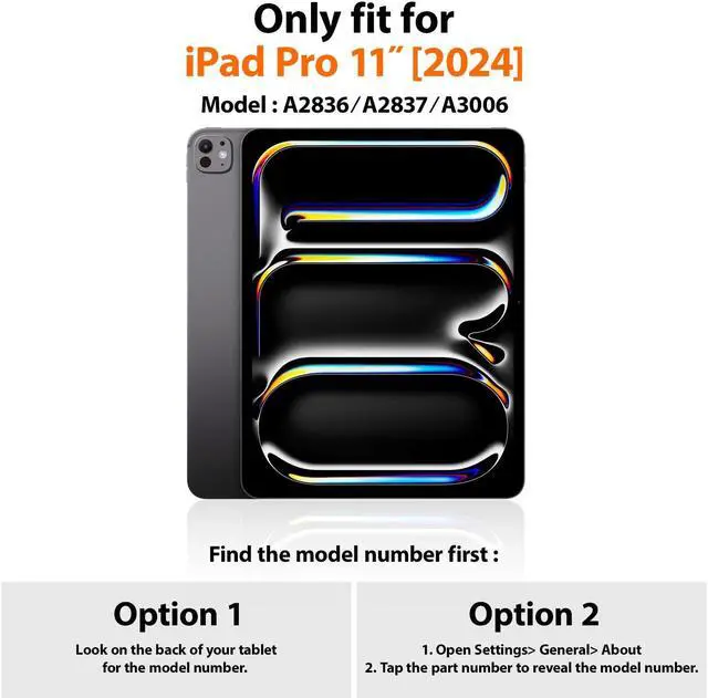 Compatibility: Only fit for iPad Pro 11 Inch 2024 (Model number: A2836/A2837/A3006); please double check the model number on the back of your tablet (A****) before purchase.