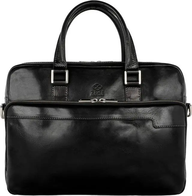Time Resistance Leather Briefcase - Italian Handmade Leather Laptop Bag - Work Bag for Men and Women - Computer Bag