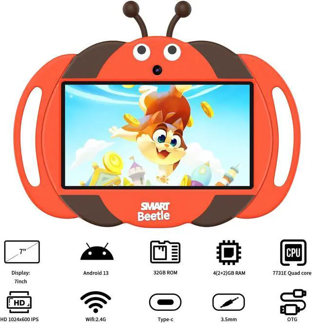 VOLENTEX Kids Tablet, 7 inch Android 13 Tablet for kids aged 3-14, 4(2+2)GB RAM 32GB ROM Toddler Learning Tablets with Shockproof Case, Parental Control, Kids App Pre-Installed