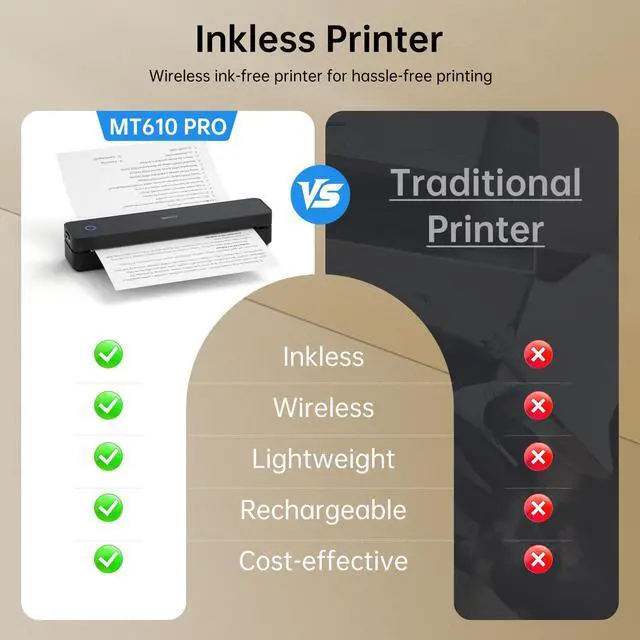 Advanced Inkless Technology: Enjoy fast, high-definition printing at 300 DPI resolution. This inkless printer requires no ink, toner, or ribbons--producing US letter/A4 prints in just 4-6 seconds(Note: Only thermal paper print is supported). Upgrade now to start a new efficient and convenient printing experience