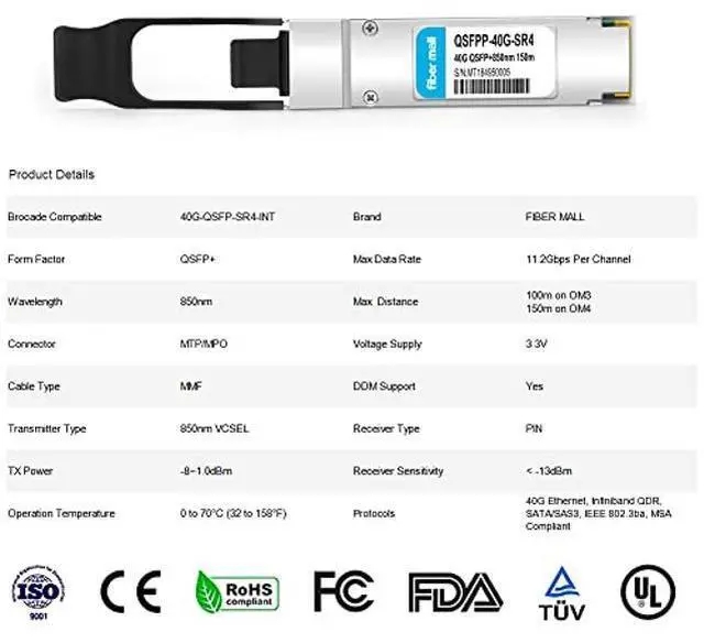 Product Features Brocade Compatible: 40G-QSFP-SR4-INT