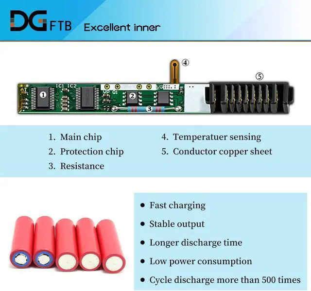 [(DG Quality)] Grade A cells mitigate the risk of battery leakage and maximize output stability. Built-in circuit protection, enhances safety of usage and extends battery life.