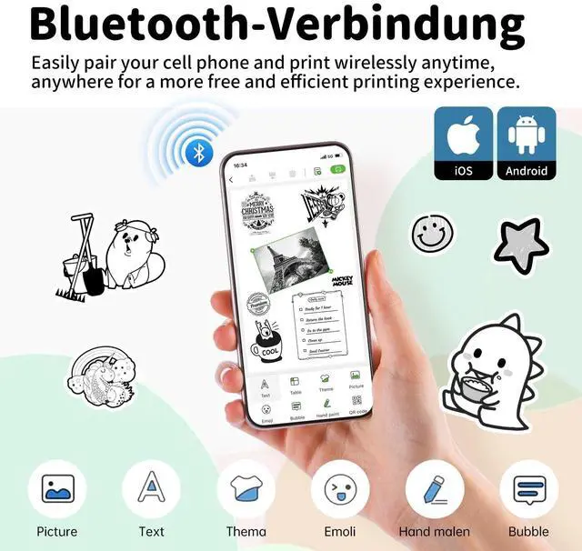 Small & Compact Design: Our portable mini printer is a compact stickers makers, with bluetooth printer for iPhone and Android compatibility, perfect for student, professional, and DIY lover. Easily carry this sticker printer in your bag or pocket to print study notes, label, or to-do list anytime, anywhere ^^