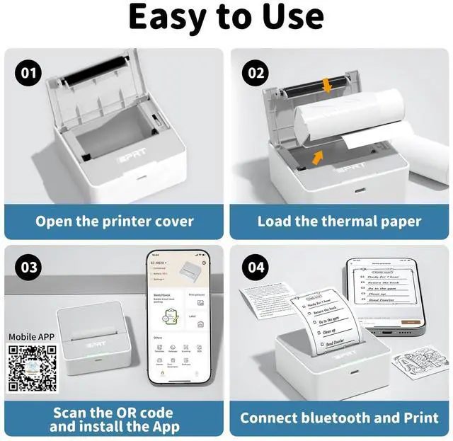 Inkless Printing: No ink or toner needed! This label printer uses thermal technology to deliver crisp, 203dpi resolution, perfect as a small printer for home use or a travel printer. Just load the thermal sticker paper and start printing ^^