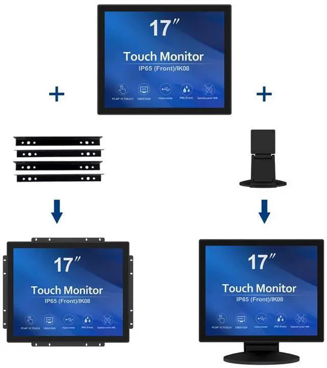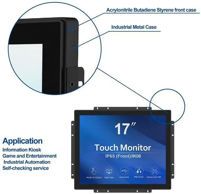 GreenTouch 17 Inch 10 Points Open Frame Industrial Touch Monitor - PACP -1280X1024-LED Display Metal Housing with HDMI, DVI, VGA Port Built-in