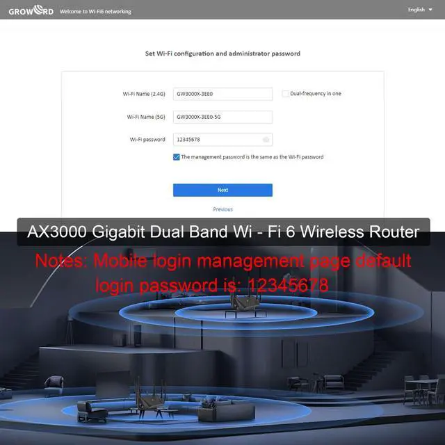 [(Faster and Smoother Internet Experience)] groword AX3000 wifi 6 wireless router is designed with dual-band signal, allowing you to reduce buffering and delay time when multiple people are browsing the Internet at the same time.2.4G transmission rate is 574Mbps, 5G transmission rate is 2402Mbps, bringing you a faster and smoother web roaming experience
