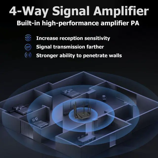 [(New Upgrade)] Our wireless router uses adopts MIMO wireless signal multi-channel technology to provide 4 times faster speed than the previous generation WiFi, which can provide high performance and stable network for up to 30 devices for synchronized video streaming an