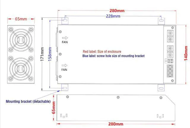 Note: -1. In-door use only, for this switch power supply is not waterproof. -2. Before power on please check input voltage avoiding damage.