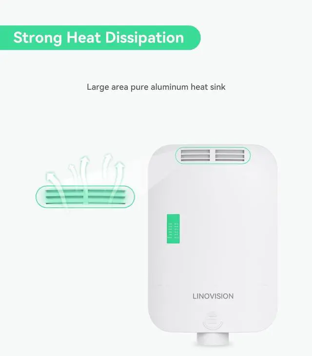 INDUSTRIAL DESIGN: Large-area pure aluminum heat sink and front air vents prevent the internal chipset from overheating. Support