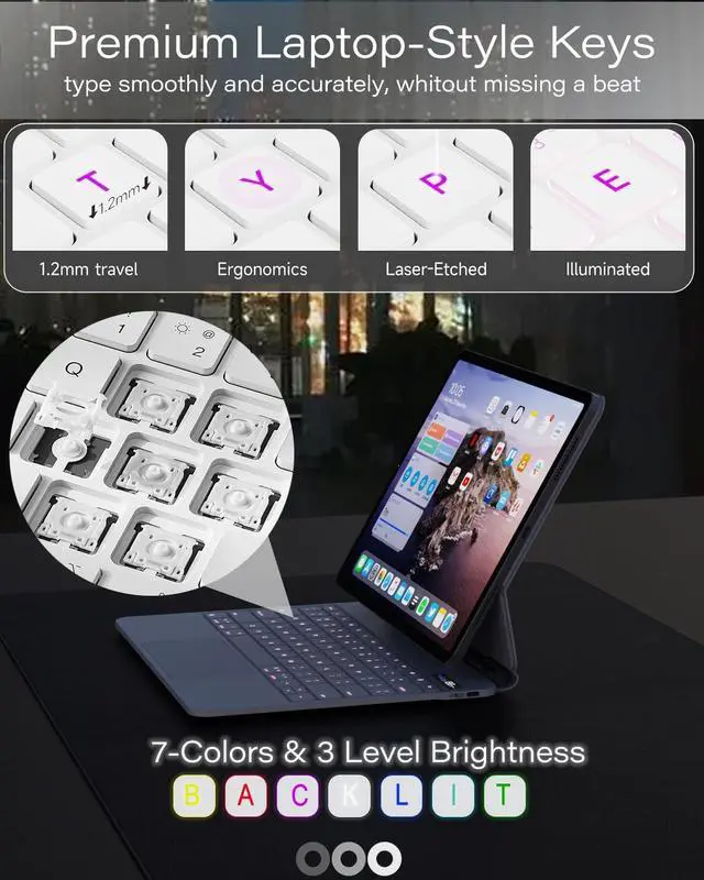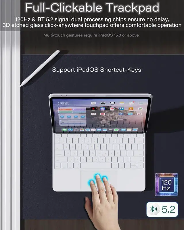 Trackpad and Shortcut Keys: Full gesture supports, redefining productivity. Quickly navigate your ipad, edit documents, create presentations, and browse the web with unparalleled speed. The ipad pro 13 inch keyboard case with a full row of iPadOS shortcuts for adjusting brightness levels, volume, or controlling your music with a single tap.