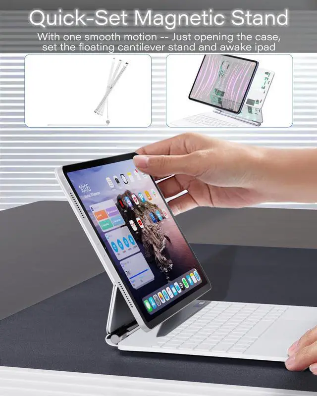 Easy-Set Laptop-Style: Simply attach your iPad to the ipad pro 13 m4 keyboard case magnetically, and with one smooth motion, set the floating cantilever stand. Just open the case to the perfect angle for typing or browsing like a laptop.