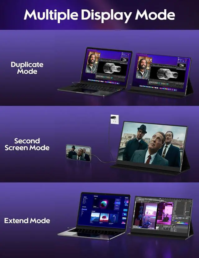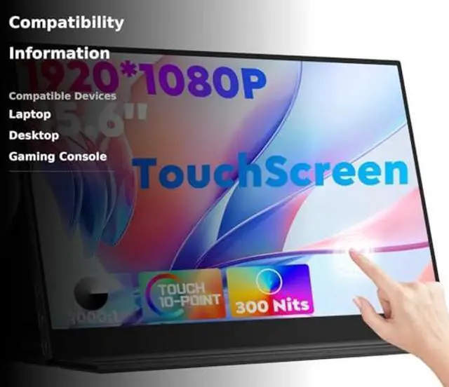 Stunning Full HD DisplayOur portable touchscreen monitor features a 15.6-inch IPS screen with a 1920x1080 resolution, providing a crystal-clear viewing experience. With a 178-degree wide viewing angle and a 60 Hz refresh rate, it delivers vibrant, true-to-life visuals. The Type-C port supports both phone and computer mirroring, making it perfect for clear and vivid images.