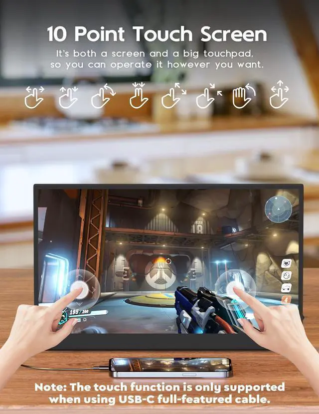 15.6-Inch Multi-Touch Portable MonitorExperience seamless touch functionality with our 15.6-inch portable monitor. Just connect your device to the monitor's USB-C port to enjoy a smooth, natural touch experience for writing and annotating directly on the screen. Note: The touch function is only supported when using USB-C full-featured cable.