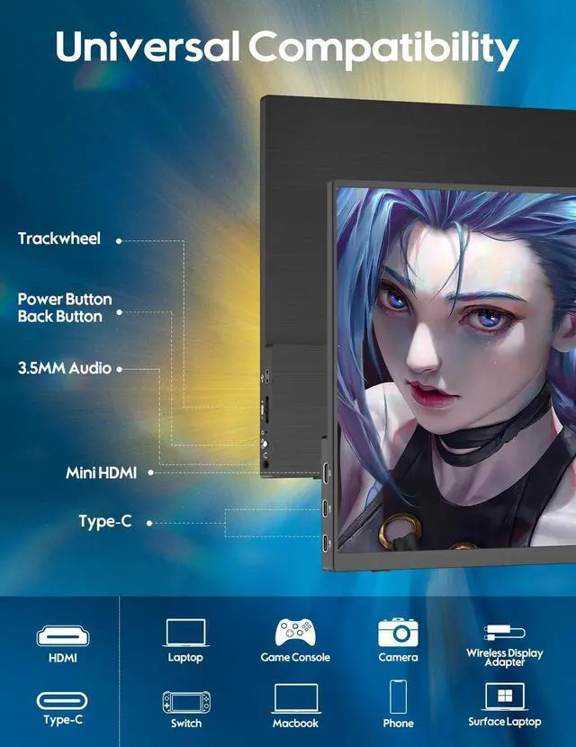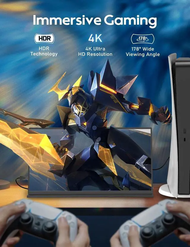 14.5" 4K DisplayThe ZSCMALLS 14.5" 4K 3840P2400P portable gaming monitor offers a high-resolution display that is capable of providing an immersive visual experience for gaming, work, and entertainment purposes. The monitor also features HDR technology, which provides superior color accuracy, making colors more vibrant and lifelike. Moreover, this monitor comes with FreeSync technology, which eliminates screen tearing and stuttering, ensuring that gamers have the best possible experience. ^^ Ultra-Slim & Lightweight Travel Monitor The ZSCMALLS portable display is indeed designed with an emphasis on ultra-slimness and lightweight. Weighing only 1.07 lbs, this monitor is exceptionally light, making it convenient to carry wherever you go.