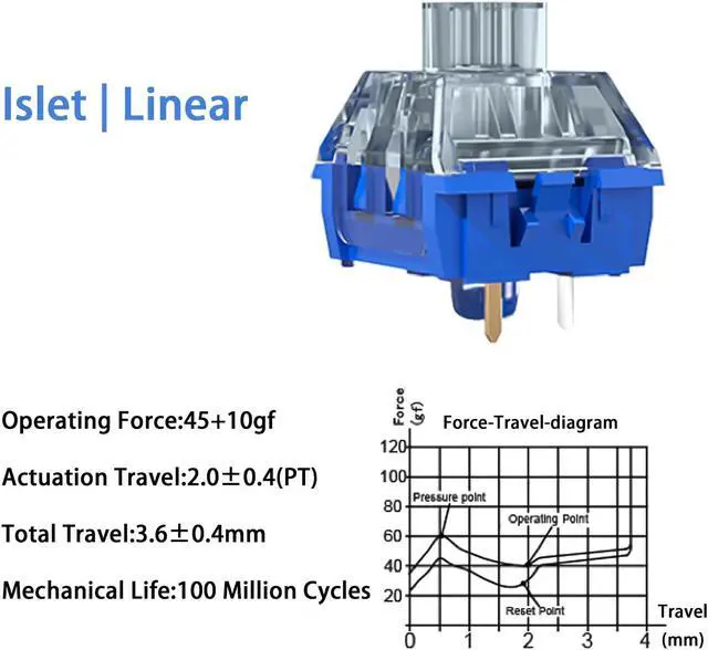 Kailh Box lslet Pro Silent Switches, Deep Sea Silent Linear 3-Pin 45gf Waterproof Dustproof Mechanical Keyboard Switches(lslet Linear, 108Pcs)