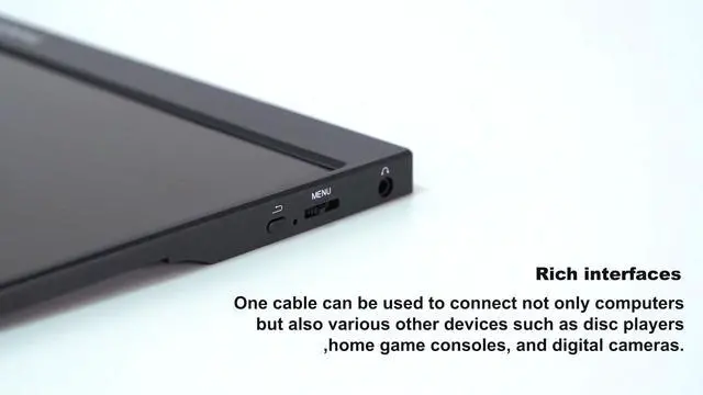 [(Slim and Lightweight)] : 15.6 inch Portable Monitor with a sleek profile and lightweight design, it's effortlessly portable for productivity or entertainment.