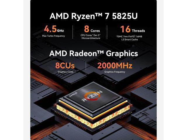 - [(High Performance Mini PC)] The Beelink EQR5 Mini PC is powered by AMD Ryzen 7 5825U(8 Core/16 Thread, TSMC 7nm FinFET,16MB L3 Smart Cache), Support Up to 4.5GHz frequency. The 5825U Mini Computer has stable and reliable performance, reduced latency, powerful loading and processing power for a smoother experience.