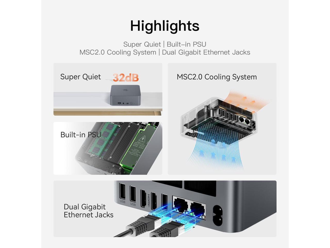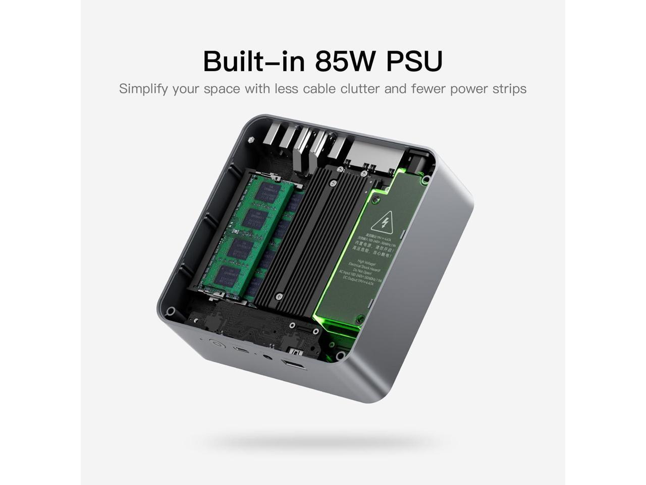 - [(Multiple Interfaces & PSU 85W)] Beelink Mini PC has a unique interface designed with 3 x USB 3.2 Gen2(10Gbps), 1 x USB 2.0 480Mbps, 1 x Type-C(data,10Gbps), 2 x HDMI(Max 4K 60Hz), 1 x AC Jack