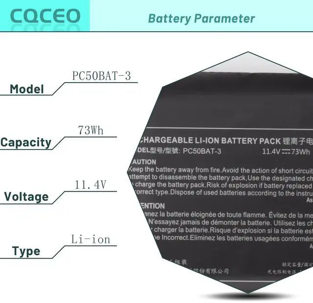 PC50BAT-3 Battery for Schenker Key 15 Comet Lake Key 15 Gaming for CLEVO PC50DN2 PC50S for SYSTEM76 Oryx PRO 6 for THUNDEROBOT 911 P1 for EUROCOM RX315 NH57AF1 3ICP6/64/115 11.4V /6220mAh/73Wh/3-Cell