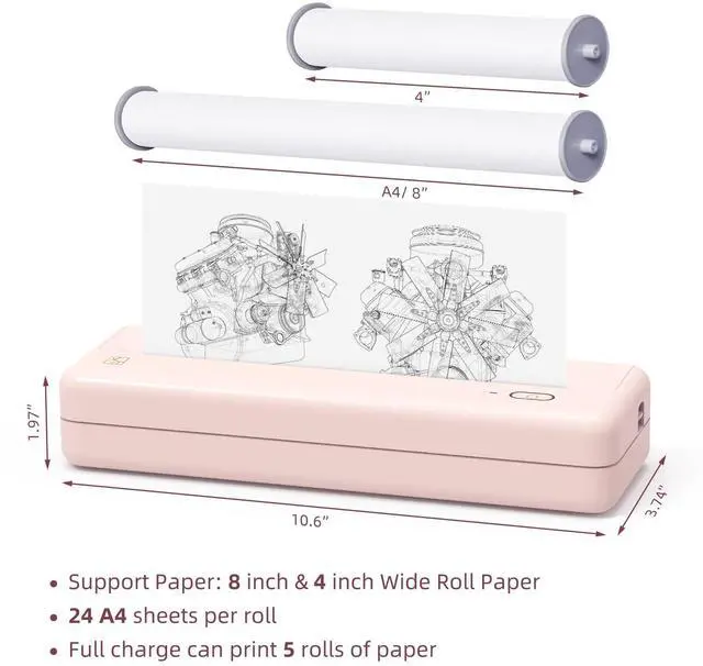 Portable Wireless Printers: This portable printer has a small size of 10.6"X3.74"X1.97", making it lightweight and portable. It can be held with one hand and fits easily in your backpack, briefcaseallowing for convenient mobile printing anywhere, whether it be for business, travel, car, office or school.