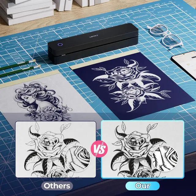 Smart & Simple with the HerePrint AppPrinting stencils is now effortless. The HerePrint App offers one-tap printing and a built-in scanner function tailored for tattoo designs. No need for extra steps like printing on white paper first just design and print directly. Best used with HPRT Tattoo Transfer Paper for top results.