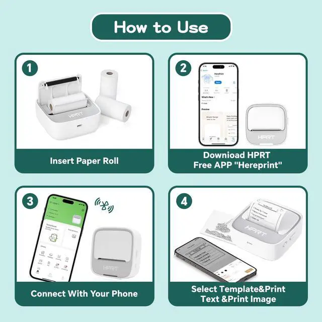 includes: 1 HPRT S1 Printer, 1 Roll Thermal Paper, 1 User Manual, 1 Power Cord (USB charger not included). If you encounter any issuessuch as blurry printing or paper feed errorsour customer support team is ready to assist with quick solutions or replacements.