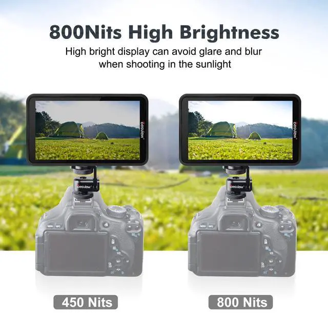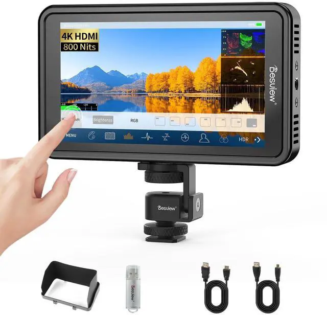 1920*1080P FULL HD Resolutiondaylight-viewable It has Full HD 1920 x 1080 high resolution IPS screen, 1000: 1 high contrast, 800cd/m brightness, presents horizontal & vertical 178 full viewing angle and accurate color, displaying more vivid colors. A high-brightness external camera screen that is labeled as daylight-viewable are better for outdoor work. ^^ Touch controlAdvanced monitoring toolsIts an all-in-one product that contains Histogram, Vectorscope, Waveform, False color, Peaking Focus Assist, Zebra Exposure, Zoom etc. with HDR, which will be able to capture display wider color gamut and full scope of dynamic range.