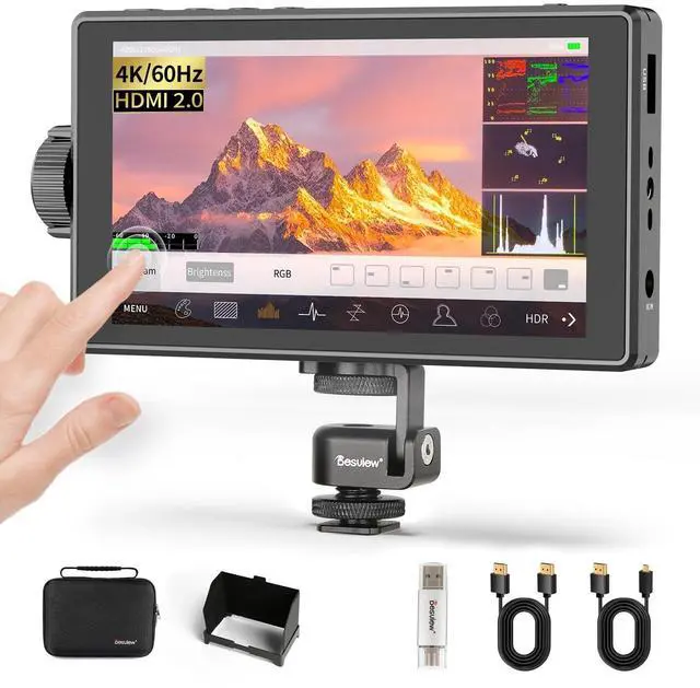 Desview A5 features a 5.5" Full HD IPS touchscreen (19201080@60Hz) supporting HDR and 4K HDMI input/output, ensuring precise and stable image performance. Complying with Rec. 709 color standard and advanced image processing technology, A5 delivers natural, accurate color reproduction to restore the real scene of shooting. The 600-nit anti-glare screen offers clear visibility under sunlight, while built-in waveform, RGB histogram, vectorscope, and 3D LUT tools allow precise exposure and color calibration. Compact and lightweight, A5 supports NP-F battery and Type-C power for flexible on-site operation, helping creators achieve consistent, reliable visual results.