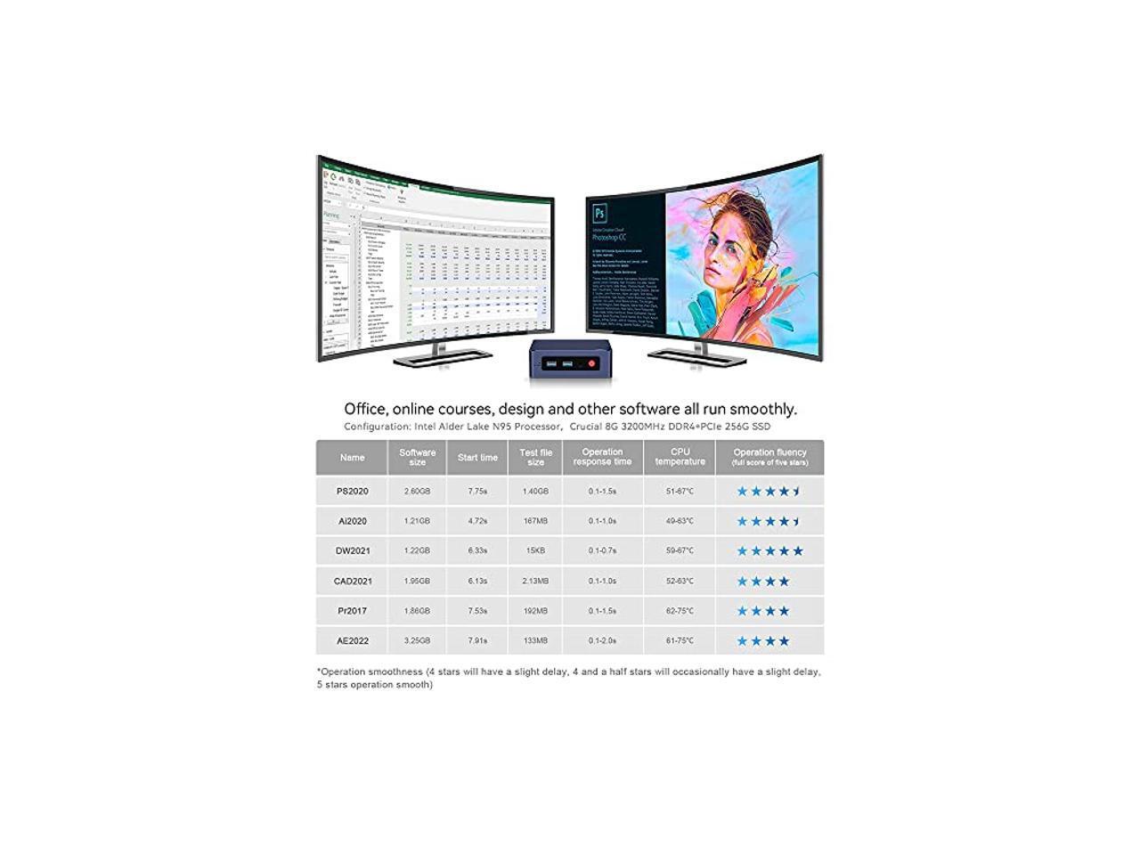 [(Dual HDMI & Intel UHD Graphics)] Dual HDMI allows you to connect two monitors which increases work efficiency effectively. The Mini Computer uses Intel UHD Graphics to support 4K FPS video playback, which brings you first-class viewing experience.