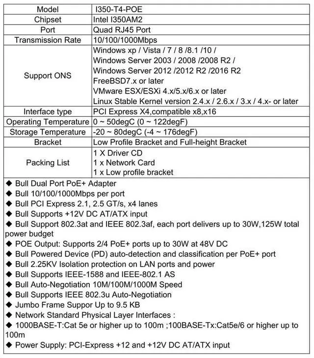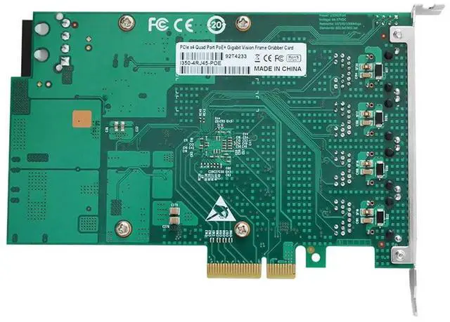 is a kind of high-performance image capture network video recorder card. The cards supports 4 independent 10/100/1000BaseT (X) 802.3 af & 802.3 at (PoE) compliant Ethernet ports, With 12 VDC AT/ATX power input. It can boost then provides up to 25.5 watts at 48 VDC power to maximum 4 PoE ports on each module. It allows power to be supplied to connected devices, such as PoE-based Gigabit cameras in machine vision inspection systems, without the need to use separate PoE injectors for those applications.