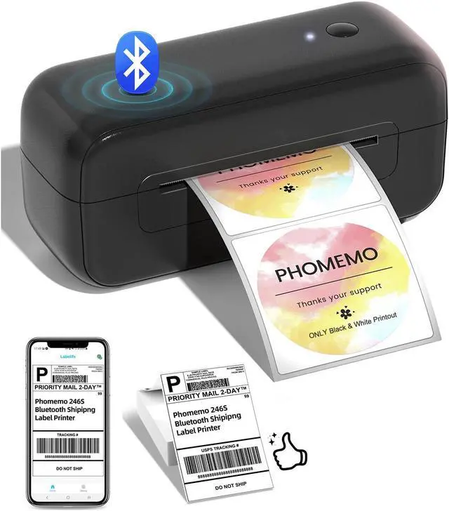 Phomemo Bluetooth Shipping Label Printer 4x6, 2025 Upgrade Desktop Thermal Label Printer for Small Business/Shipping Packages/Office/Home, Widely for, Ebay, Shopify, Etsy, UPS, FedEx - Black