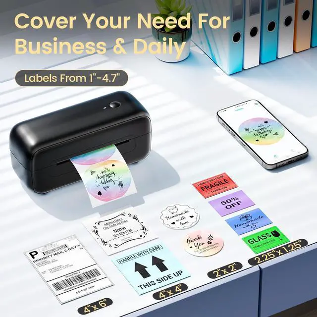 2025 Upgrade Series: Phomemo is committed to innovating bluetooth thermal label printers. With its sleek curved design and a trendy black color scheme, it adds a touch of style and versatility.The black shipping label printer not just a printer, it can also be a decorative piece for your home or office. A must-have partner for your business success.