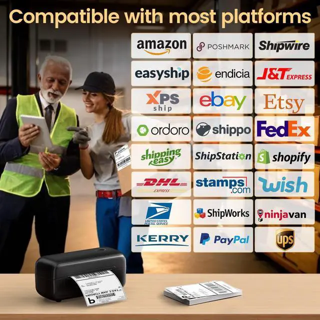 Inkless, Cost-effective Printing-This label printer designed for shipping packages offers inkless, mess-free, cost-effective, and time-saving printing. With a blazing fast printing speed of up to 150mm/s (prints 70+ 4x6 labels per minute), it effortlessly handles over 50 kilometers (over 500,000 labels) of shipping labels. The high-resolution 203 DPI ensures crisp and scan-friendly labels.
